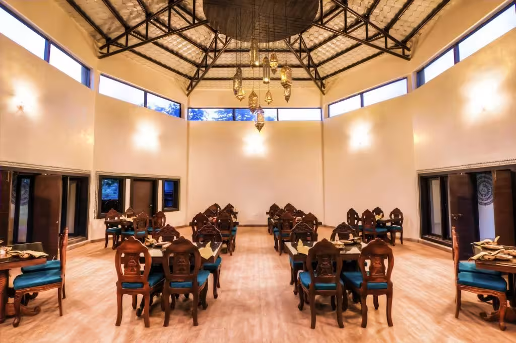 Aranyak Resort is a premium jungle lodge near Tala Gate of Bandhavgarh National Park. The resort offers elegantly designed cottages and villas that combine modern comfort with a natural forest setting. Each room has a private balcony or sit-out with serene views of the surrounding jungle. Guests enjoy easy access to morning and evening safaris, personalized service, and a tranquil stay close to nature.